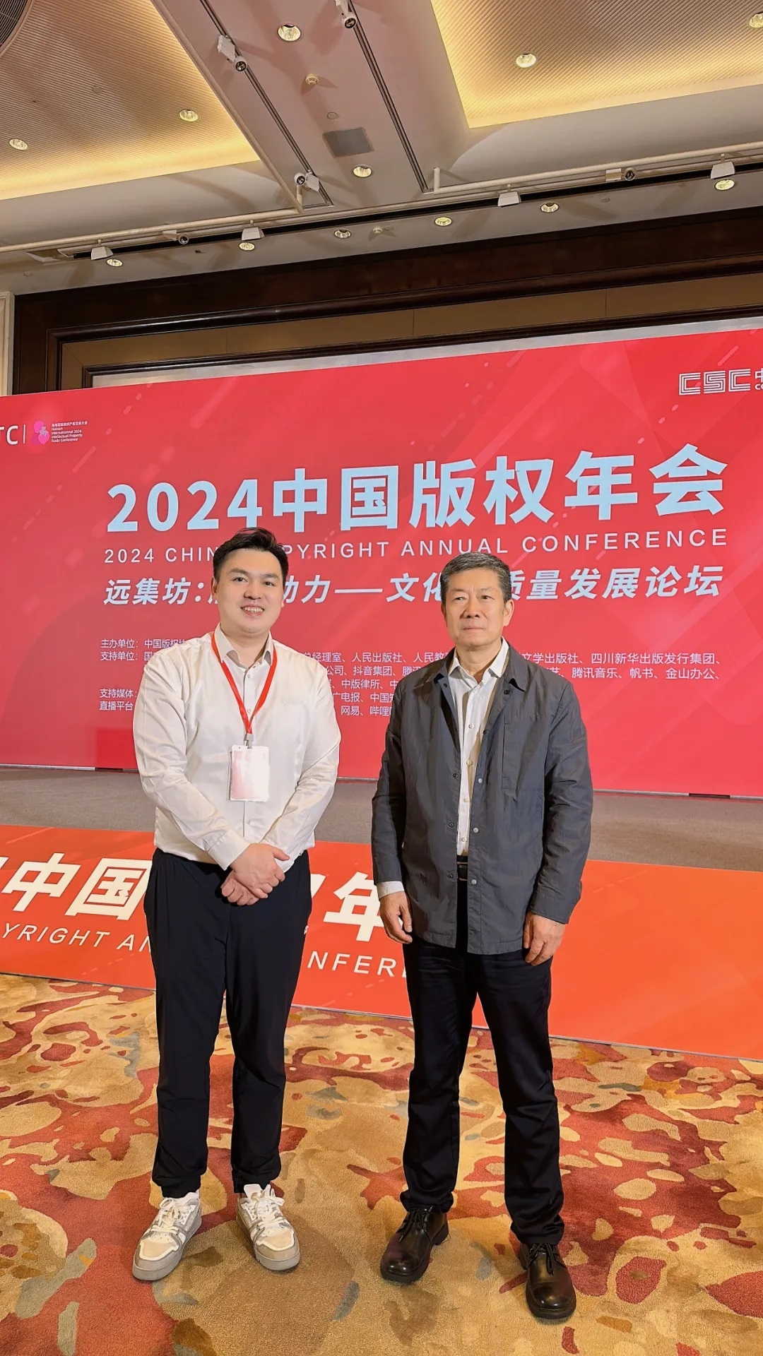 武漢天成貴龍文化傳播有限公司總經(jīng)理成海蛟受邀出席參加了2024中國版權(quán)年會系列活動。著名歷史學(xué)家閻崇年,第十二屆全國人大常委、科教文衛(wèi)委員會主任委員、原新聞出版總署署長、國家版權(quán)局原局長柳斌杰,中國版權(quán)協(xié)會理事長閻曉宏與成海蛟總經(jīng)理在會場親切交流并合影。